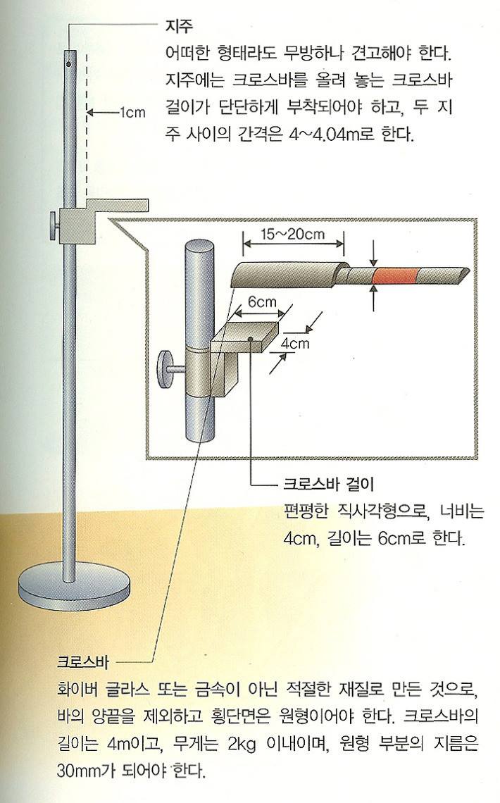 이미지 확대보기 from koc.chunjae.co.kr 높이뛰기는 도움닫기에서 발생한 수평 방향의 속도를 수직 속도로 전환하여 크로스바를 넘는 경기고, 도움닫기 → 발구르기 → 공중 동작 → 착지의 4단계로 구분된다. 뜀뛰기 경기에는 높이뛰기, 장대높이뛰기, 멀리뛰기, 세단뛰기 경기가 있다. 뜀뛰기 운동에는 멀리뛰기·높이뛰기·3단뛰기·장대높이뛰기 등이 있는데 내용과 방법이 각각 다르지만, 공통적인 기술은 도움닫기·발구르기·공중동작·착지의 네 가지이다.